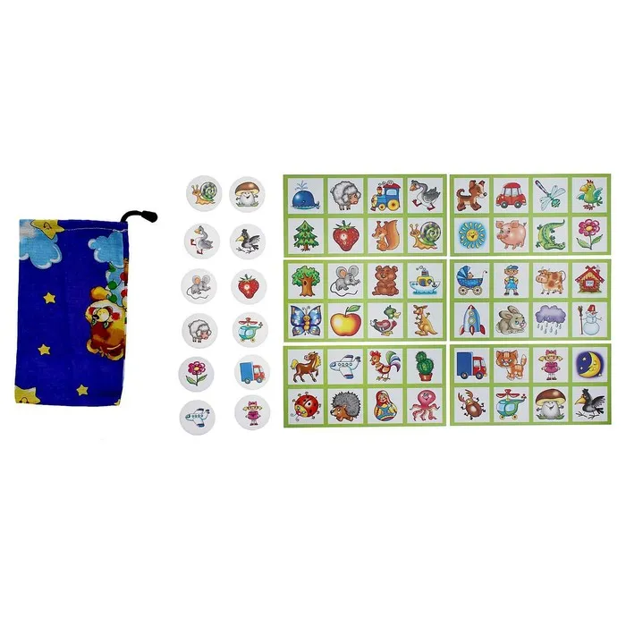 Лото деревянное «Домашние и дикие животные», плашки 24 шт.: 3.2 × 3.2 × 1 см