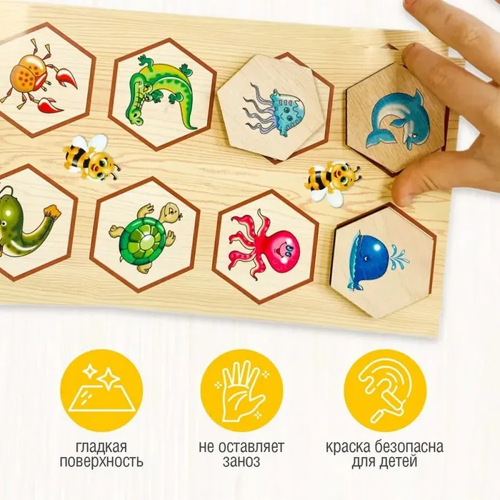 - Лото деревянное «Пчёлка» развивает внимательность, скорость реагирования, визуальную и слуховую память, навыки обобщения, речь и кругозор.