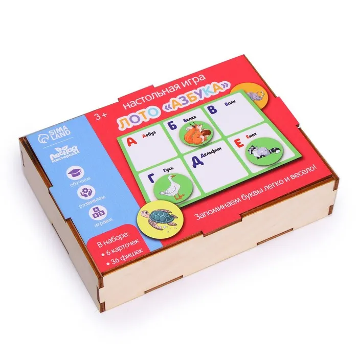 Деревянное лото «Азбука для малышей» — это увлекательная и обучающая игра для детей от 3 лет, которая помогает изучать буквы, слова и русский язык в игровой форме. В набор входят 36 фишек с изображениями животных и предметов, а также 6 карточек с буквами и словами. Игра подходит для всей семьи, делая процесс обучения весёлым и интересным.
