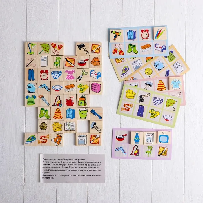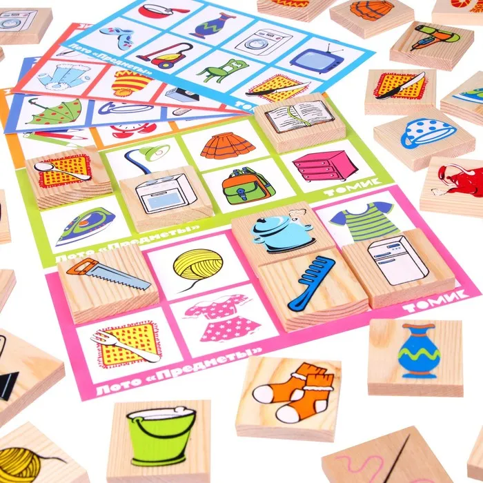 Одной из самых популярных и увлекательных семейных игр во все времена было и остаётся лото. Но классическое лото, которое предполагает знание чисел в пределах сотни, затрудняет игру для малышей. Специально для них существует детское лото, где вместо бочонков с числами используются фишки с картинками — геометрическими фигурами, животными, игрушками.