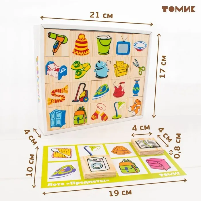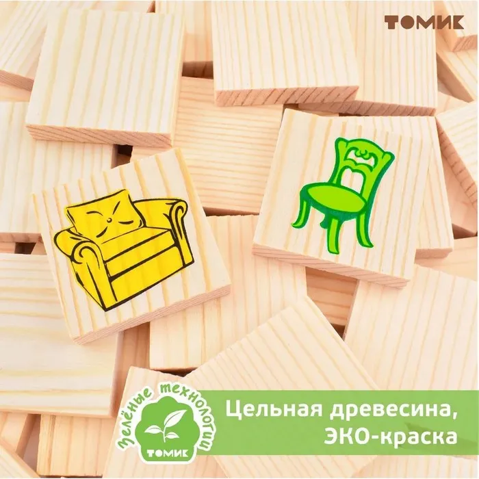 Как и вся продукция "Томик", детали лото сделаны из чистого дерева и сертифицированы для малышей, а нанесённые шелкографией рисунки долговечны и надёжны.
