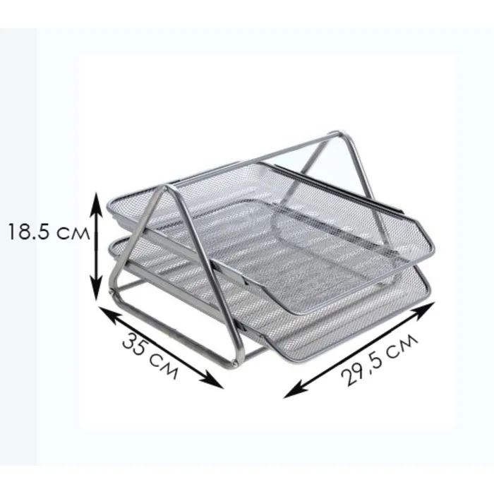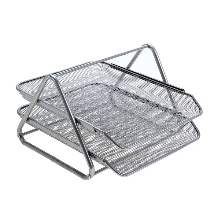 Лоток для бумаг горизонтальный, 2 отделения, металлическая сетка, серый — Характеристики