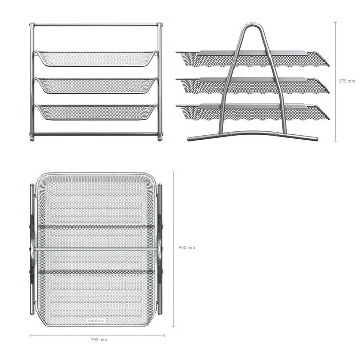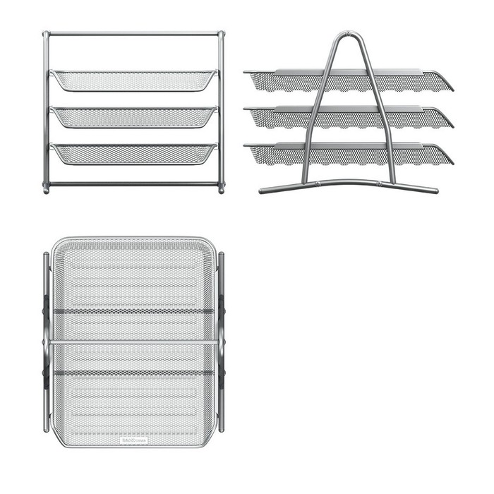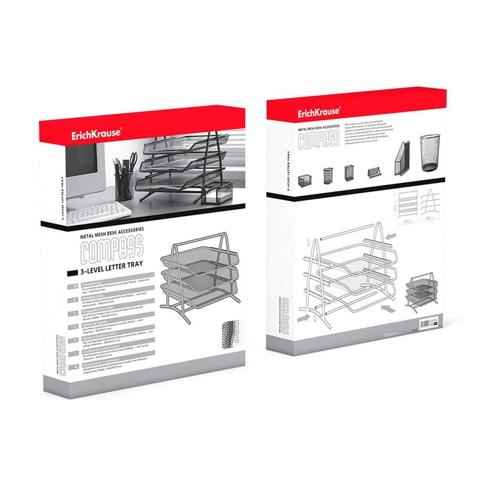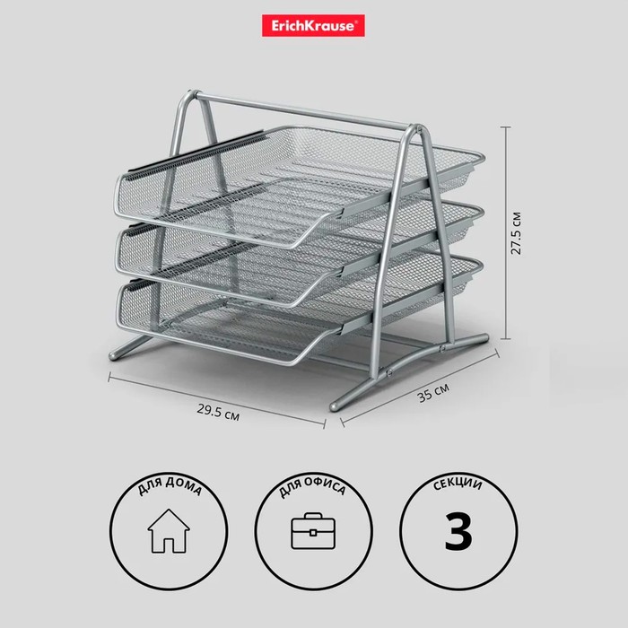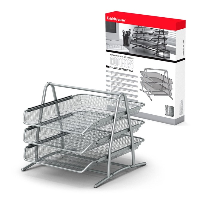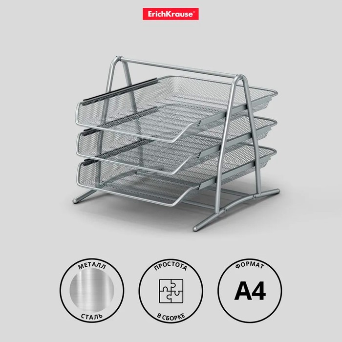 Лоток для бумаг горизонтальный 3-х уровневый ErichKrause Steel, сборный, металлическая сетка, серебристый — Характеристики
