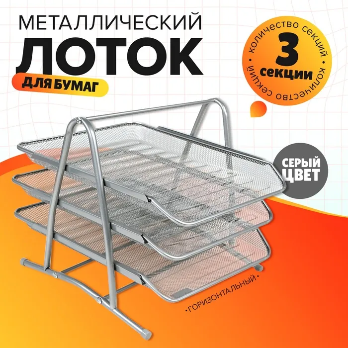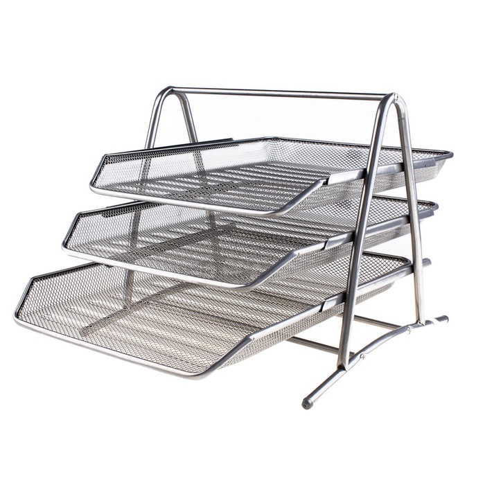 Лоток для бумаг горизонтальный, 3 отделения, серая сетка — Характеристики