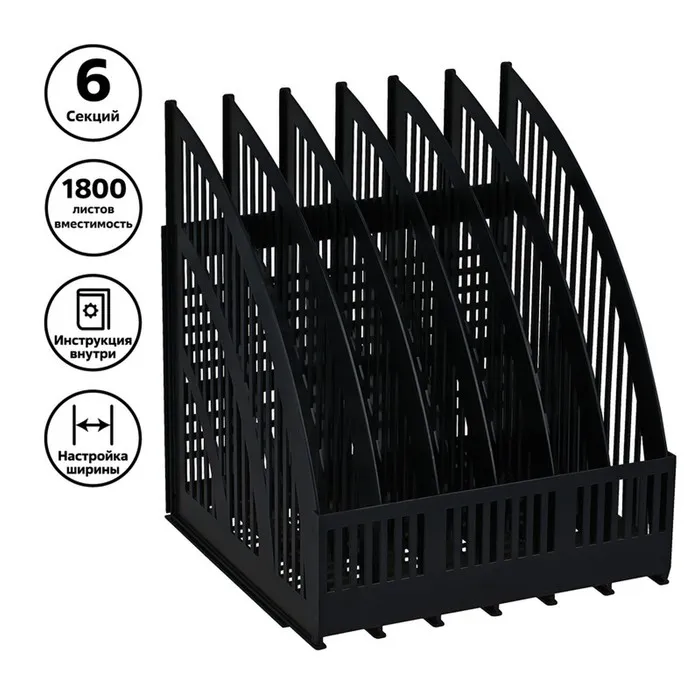 Лоток для бумаг сборный, LINE, вертикальный, 6 отделений, чёрный — Характеристики