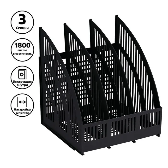 Лоток для бумаг сборный, вертикальный, 3 отделения, чёрный — Характеристики