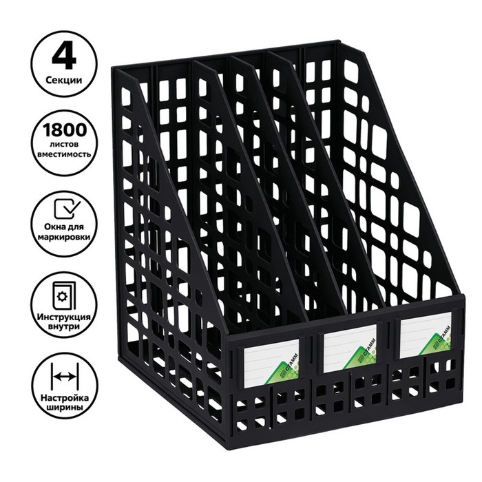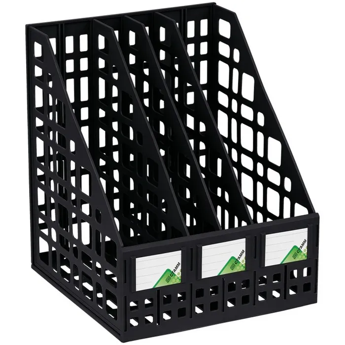 Лоток для бумаг сборный, вертикальный, 4 отделения, чёрный — Характеристики