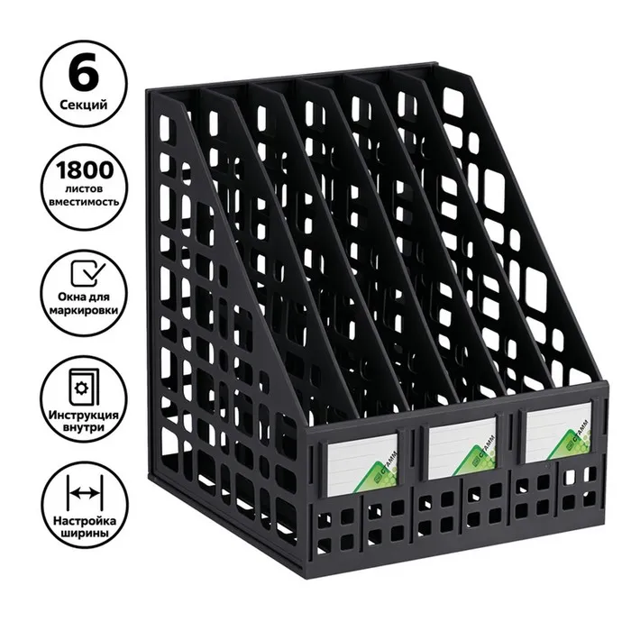 Лоток для бумаг сборный, вертикальный, 6 отделений, чёрный — Характеристики