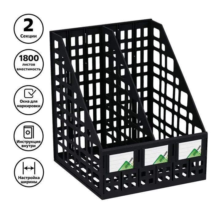 Лоток для бумаг «Стамм», сборный, вертикальный, 2 отделения, чёрный — Характеристики