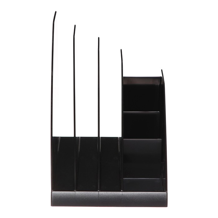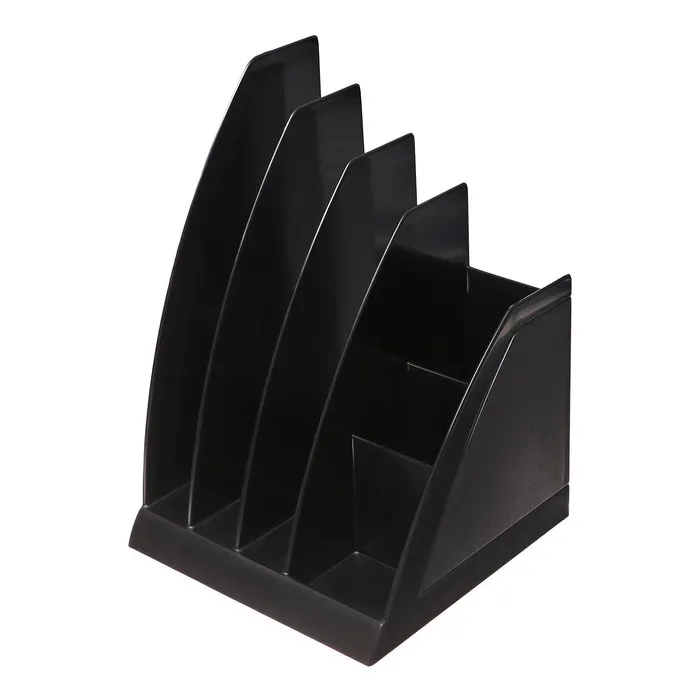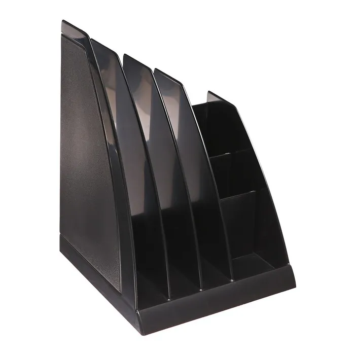 Настольная подставка с отдельными секциями для хранения как документов, журналов и каталогов любого формата, так и канцелярских принадлежностей. Изготовлена из высококачественного пластика