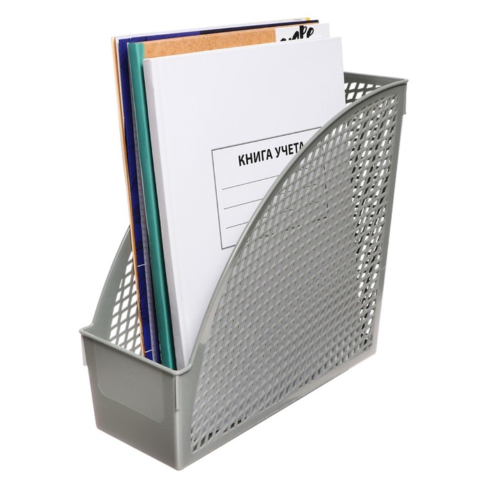 Вертикальный лоток выполнен из качественного пластика синего цвета. Современный дизайн лотка освежит Ваше рабочее пространство. Дает возможность удобно хранить документы, папки и другую печатную продукцию формата А4. Представляет собой устойчивую неразборную конструкцию с прочной сетчатой поверхностью боковых стенок, благодаря которой является удобным для хранения объемных документов