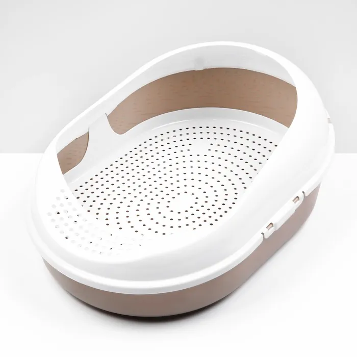 - Продуманный дизайн: высокие борта предотвращают разбрасывание наполнителя, а сетка позволяет поддерживать лапы кошки в чистоте.