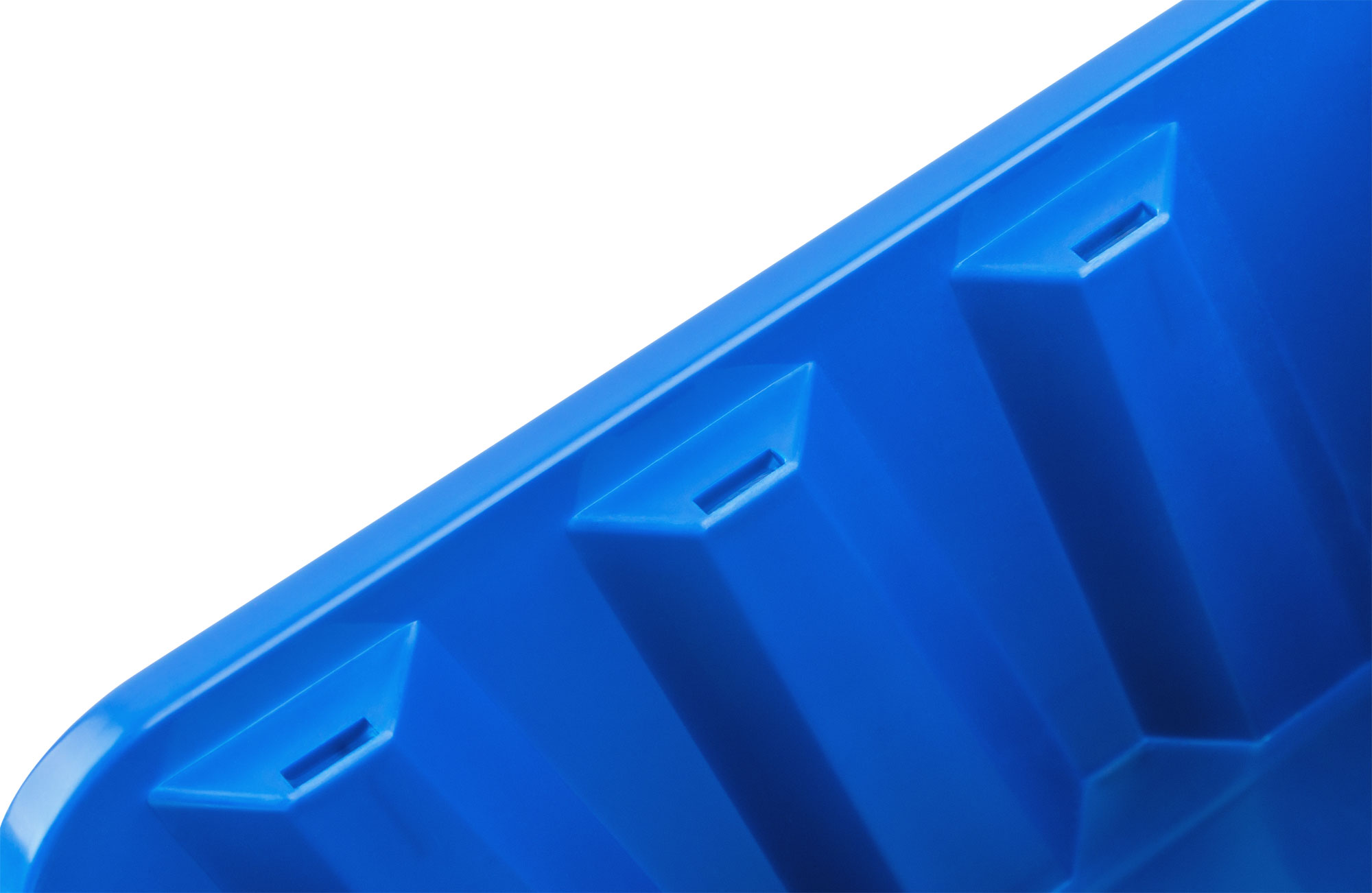 Лоток изготовлен из прочного полипропилена, что обеспечивает его долговечность и стойкость к механическим повреждениям. Усиленные ребра жесткости придают дополнительную надежность конструкции, позволяя использовать лоток в условиях интенсивной работы.