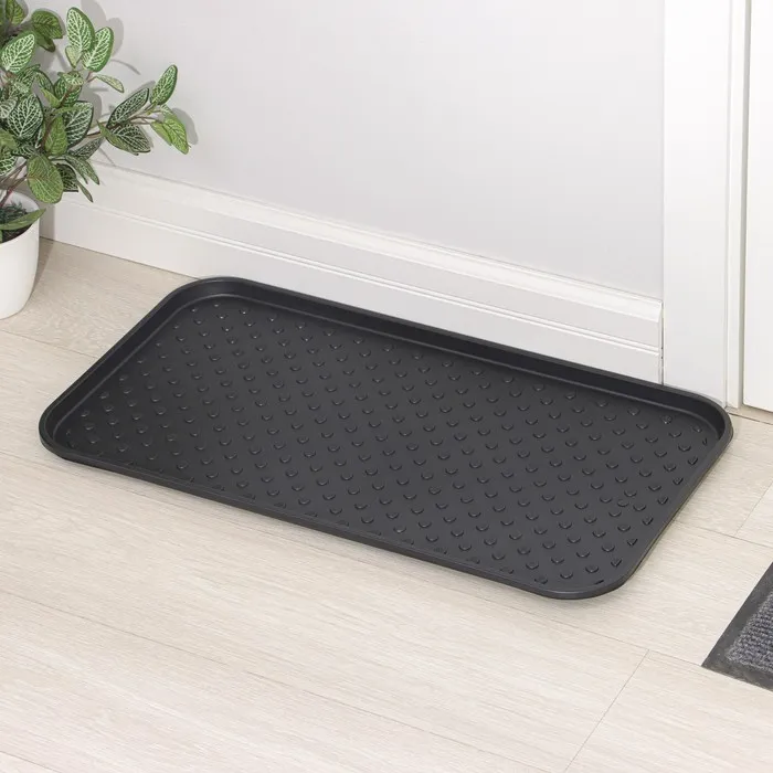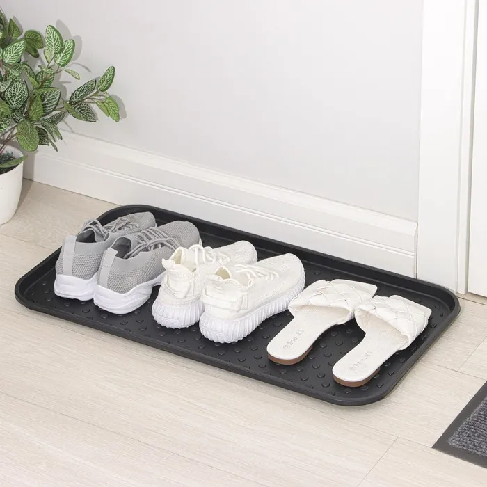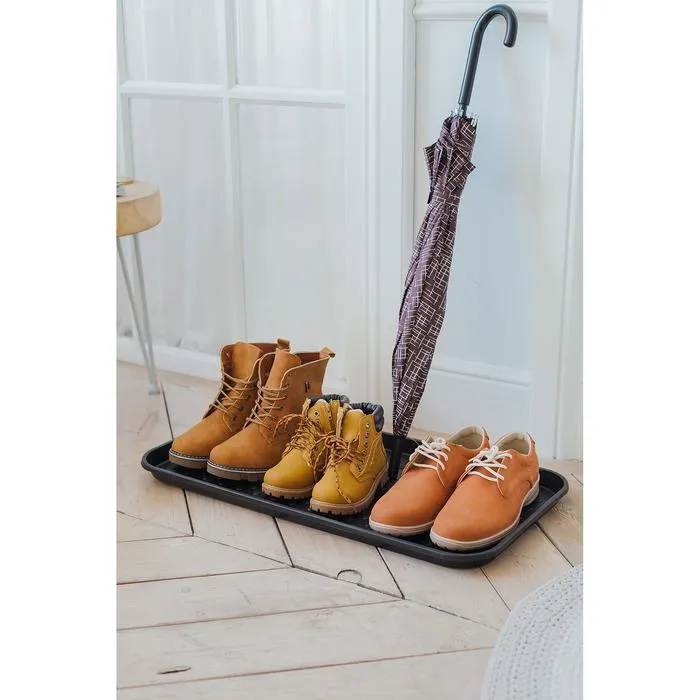 Лоток для обуви — практичный аксессуар, который поможет поддерживать чистоту и порядок в прихожей. Защищает покрытие пола от влаги и грязи. Выпуклости на дне лотка позволяют обуви избавиться от воды и просохнуть.