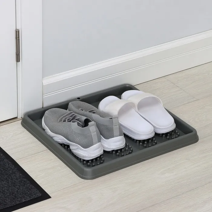 Лоток для обуви — практичный аксессуар, который поможет поддерживать чистоту и порядок в прихожей. Защищает покрытие пола от влаги и грязи. Выпуклости на дне лотка позволяют обуви избавиться от воды и просохнуть.