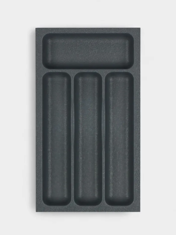 - Разделение лотка на 4 секций поможет вам легко разместить ножи, вилки и другие предметы кухонной утвари отдельно друг от друга.