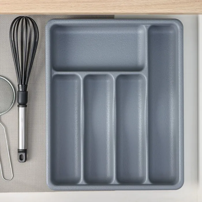 - Разделение лотка на 5 секций поможет вам легко разместить ножи, вилки и другие предметы кухонной утвари отдельно друг от друга.