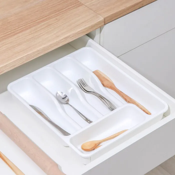 Лоток для столовых приборов раздвижной, 36×30,5×5 см, белый — Характеристики