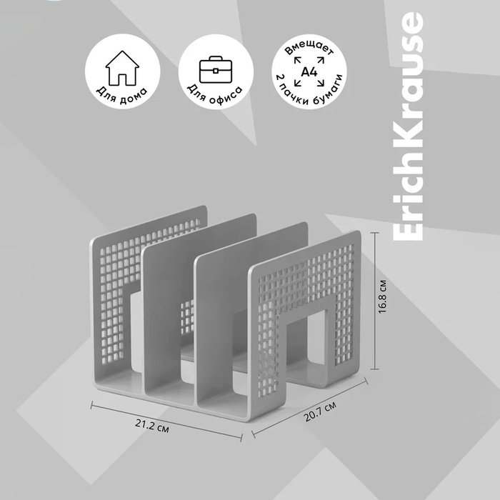 Лоток-сортер для бумаг вертикальный, 3 отделения, ErichKrause, серый — Характеристики