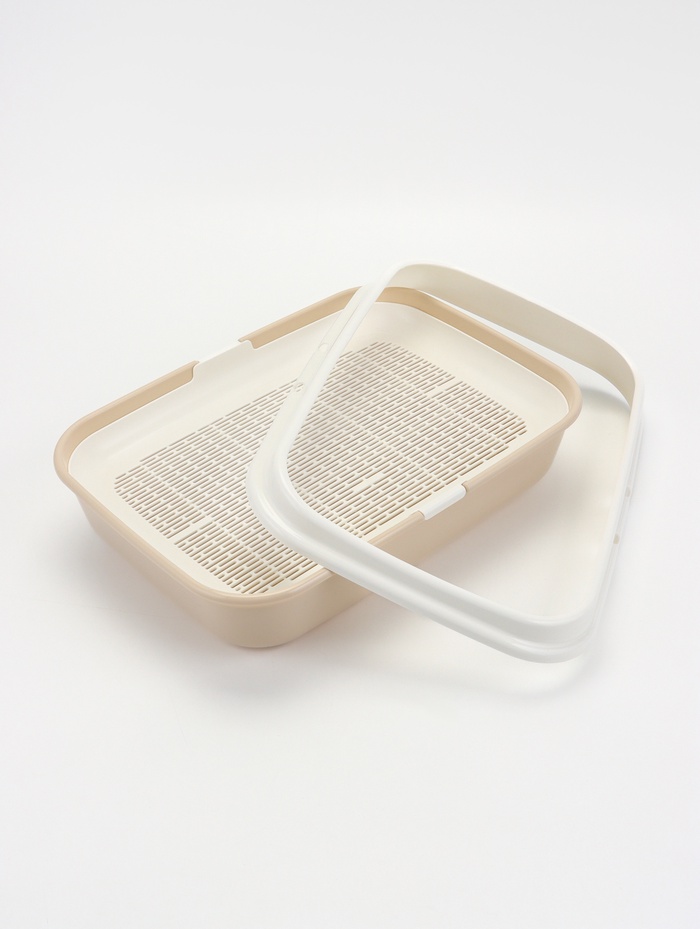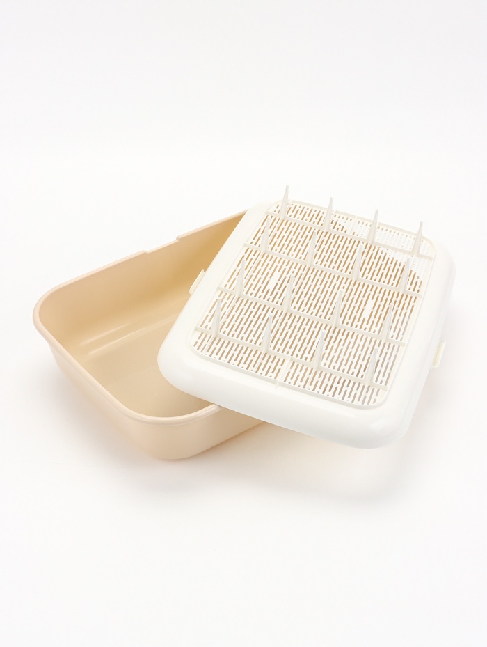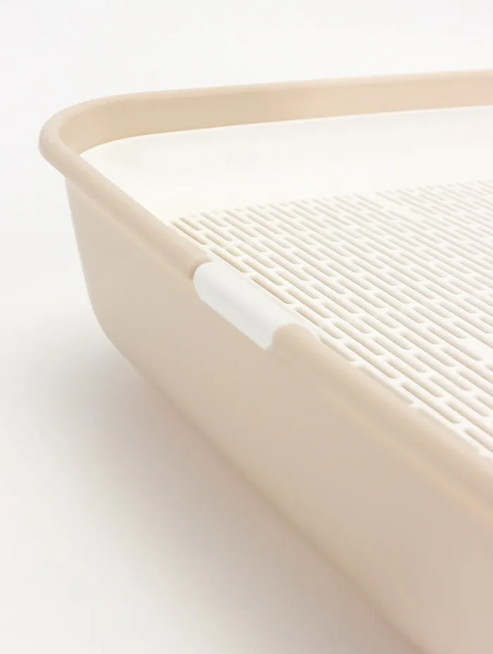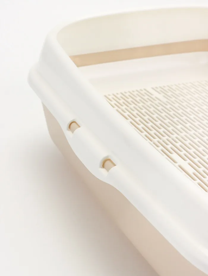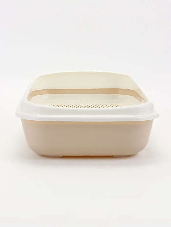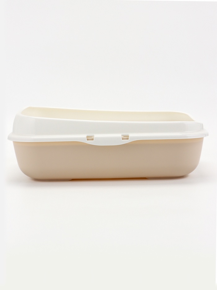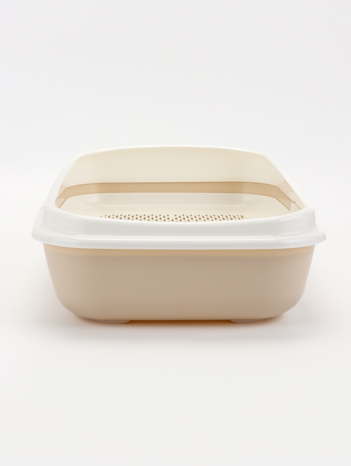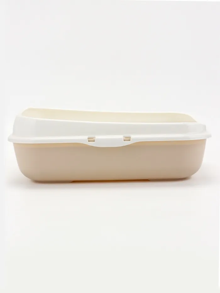 Удобство в ежедневном использовании: Нейтральный бежевый цвет гармонично вписывается в интерьер. Лоток подходит для использования с любым типом наполнителя. Это практичный выбор для котят и взрослых кошек, который делает уход за питомцем проще и гигиеничнее.