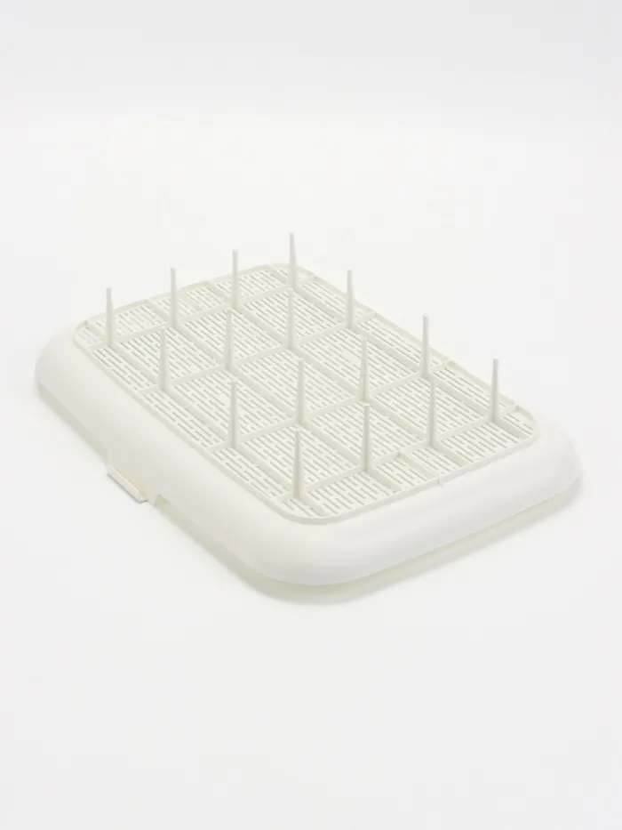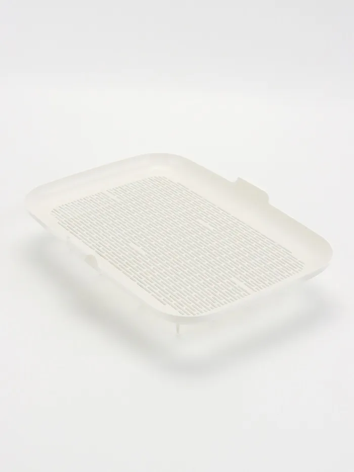 - Гигиеничная решётка на ножках: Сетка приподнята над дном на 0.5 см. Это позволяет жидкости стекать вниз, оставляя лапы кошки сухими и чистыми. Решётка легко снимается для мытья.
