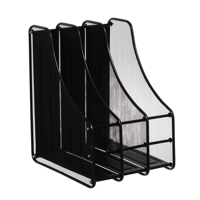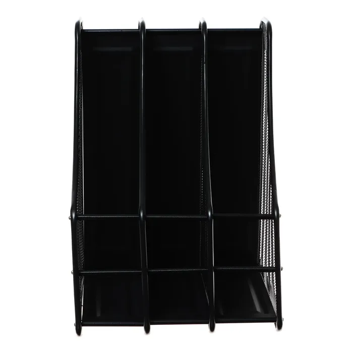 Выполнен из металла чёрного цвета с тремя отделениями.Предназначен для хранения бумаг формата А4.Представляет собой устойчивую долговечную неразборную конструкцию с сетчатыми боковыми поверхностями.Вертикальный лоток для бумаг обеспечит порядок среди бумаг!Спешите приобрести все для организации рабочего места в нашем интернет-магазине!