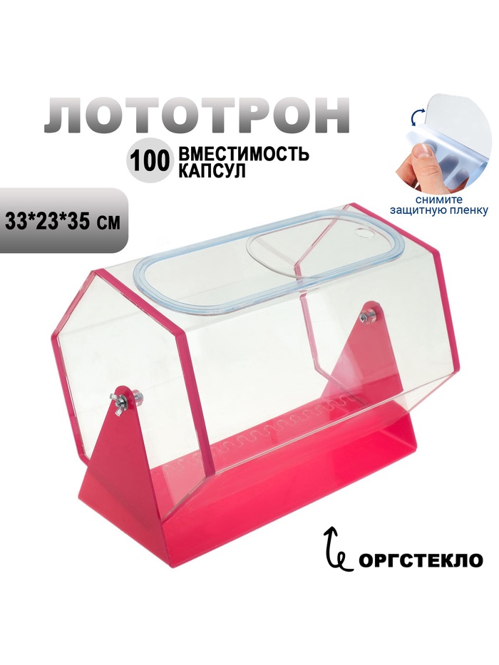 Лототрон с розовым основанием и размерами 33×23×35 см станет незаменимым атрибутом для проведения лотерей и розыгрышей. Прозрачное оргстекло обеспечивает полную видимость содержимого. Подставки из оргстекла (листовой акрил). Благодаря использованию 100% акрила, подставки имеют идеальную прозрачность, высочайший блеск и шикарный внешний вид. ВНИМАНИЕ: Изделия поставляются в матовой защитной плёнке, белого, синего, зелёного или прозрачного цвета, которую необходимо удалить перед оценкой качества или перед использованием.