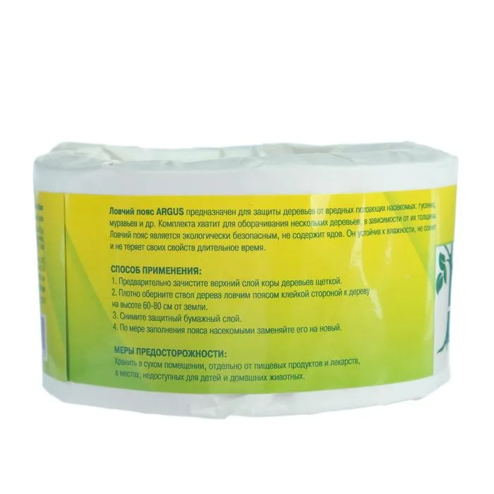 Ловчий пояс Argus - это инновационное решение для защиты деревьев от вредных ползающих насекомых, таких как гусеницы, муравьи и другие. Он состоит из специальной ленты, которая оборачивается вокруг ствола дерева и не дает вредителям залезть на него. Комплект ловчего пояса достаточен для оборачивания нескольких деревьев, в зависимости от их толщины.