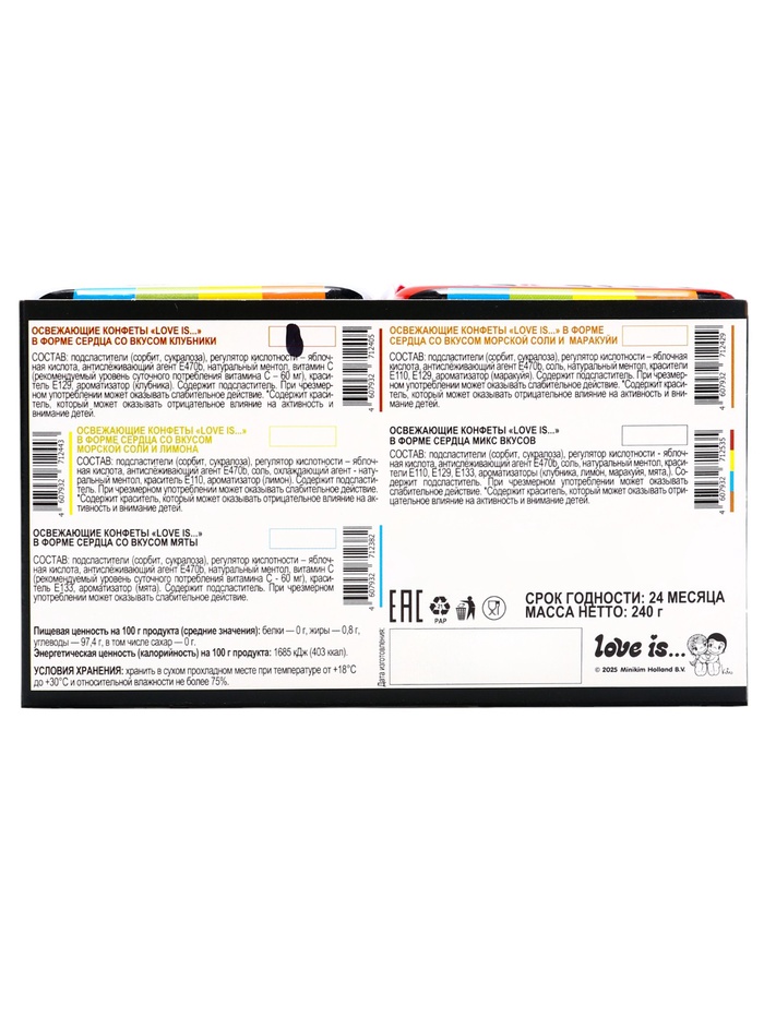 LOVE IS освежающие конфеты в форме сердца со вкусом клубники 12х12х20 г — Характеристики