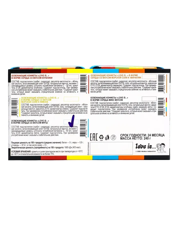 LOVE IS освежающие конфеты в форме сердца со вкусом мяты 12х12х20 г — Характеристики