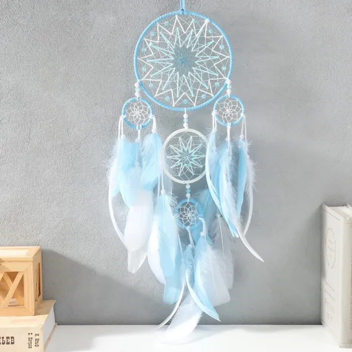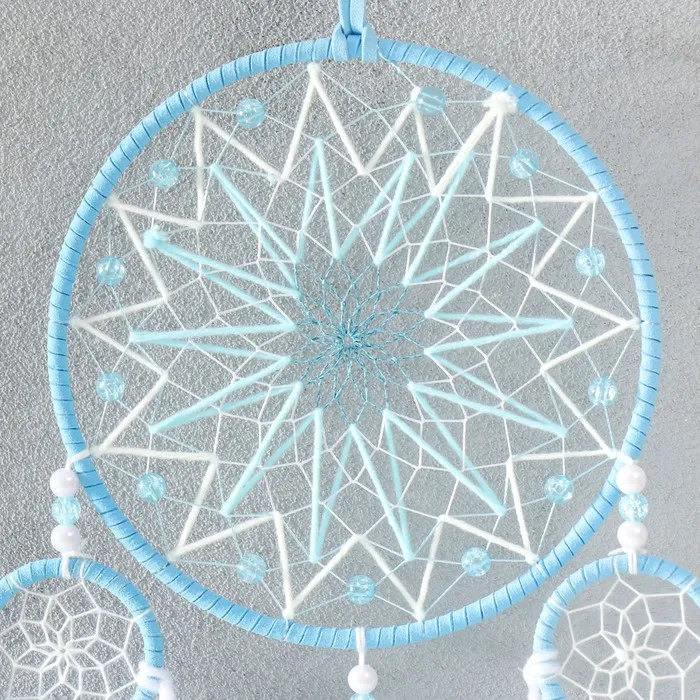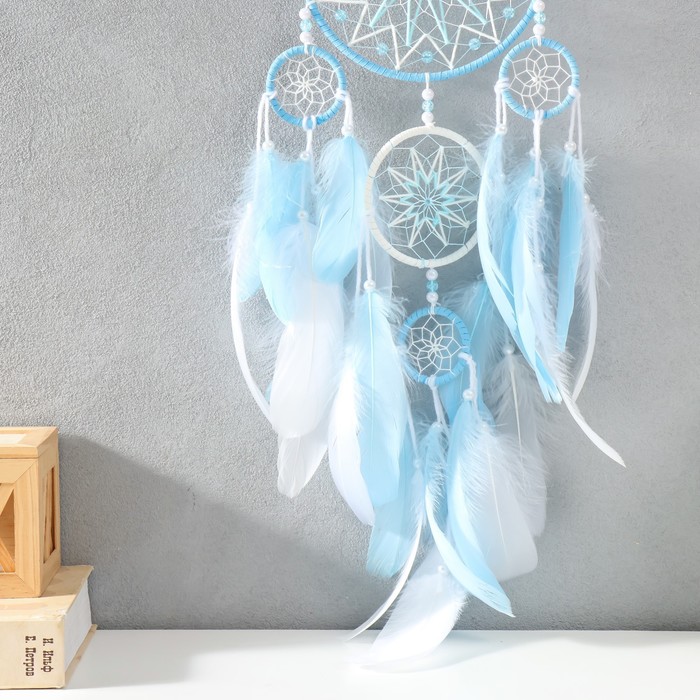 Ловец снов 5 колец "Многоконечная звезда" бело-голубой d=5, 9 и 16 см 16х66 см — Характеристики