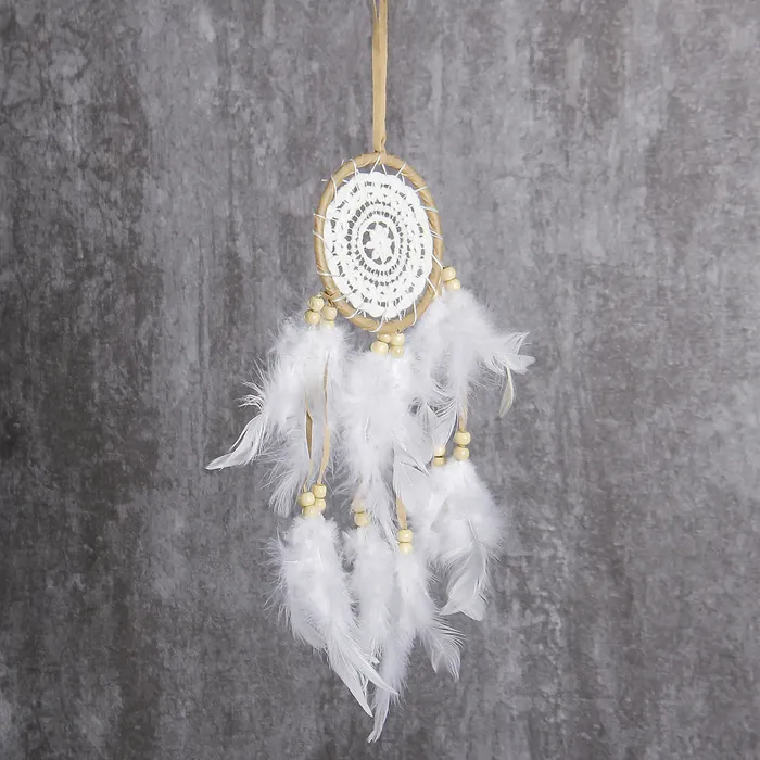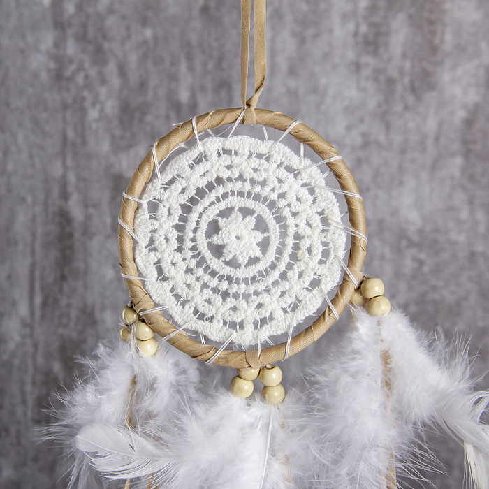 Ловец снов амулет с кружевом «Дуновение ветра», d=8 см, длина 28 см — Характеристики