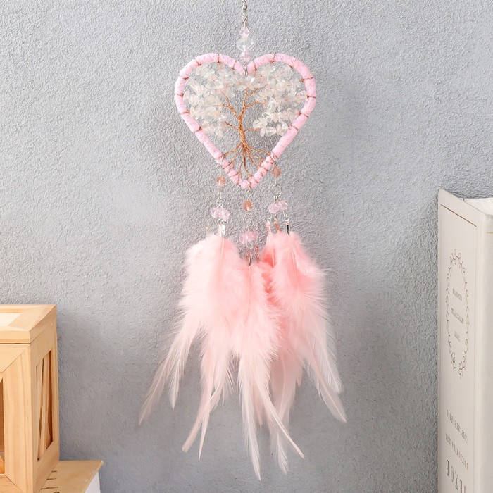 Ловец снов "Деревце в сердце" розовый 35х8 см