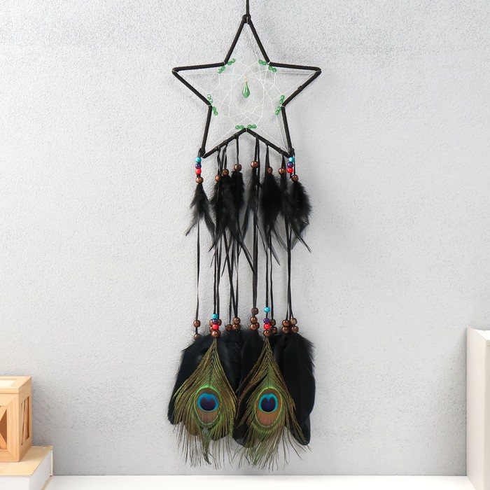 Ловец снов "Звезда. Перья павлина" 20х73 см