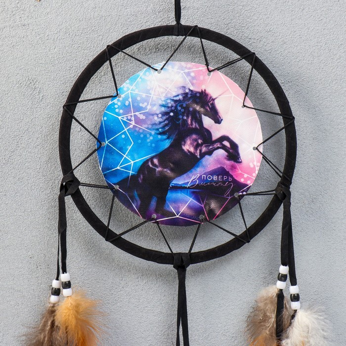 Ловец снов "Чёрный единорог - Поверь в мечту" d=20 см