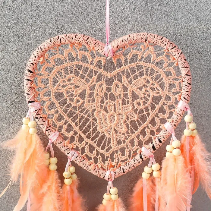Ловец снов «Кружевное сердце», персиковый, 60 см — Характеристики