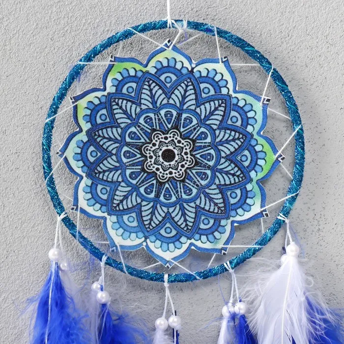 Ловец снов "Мандала с синими перьями" 60х15х0,7 см — Характеристики