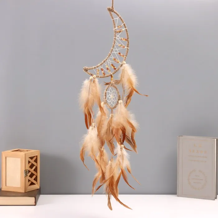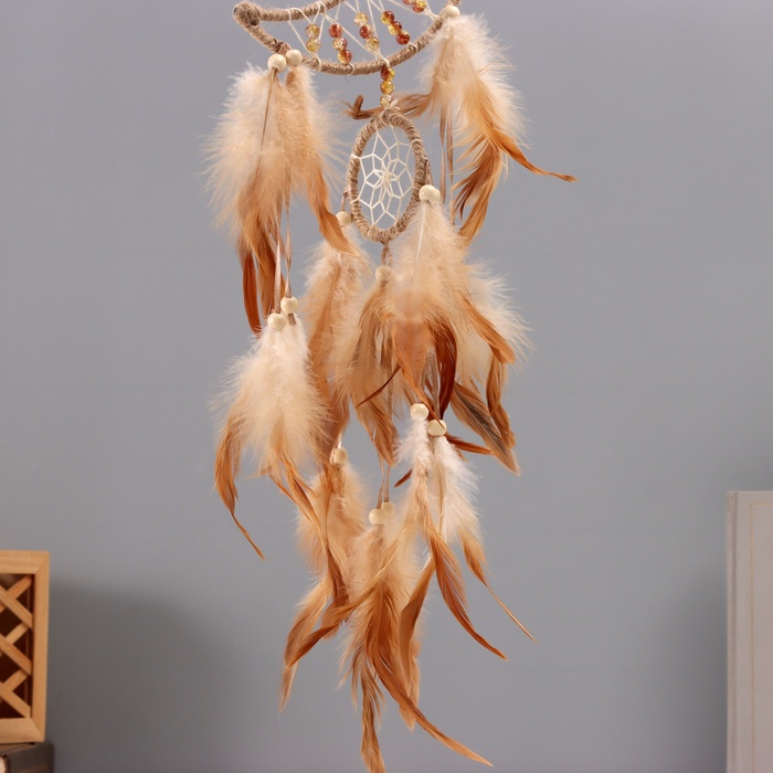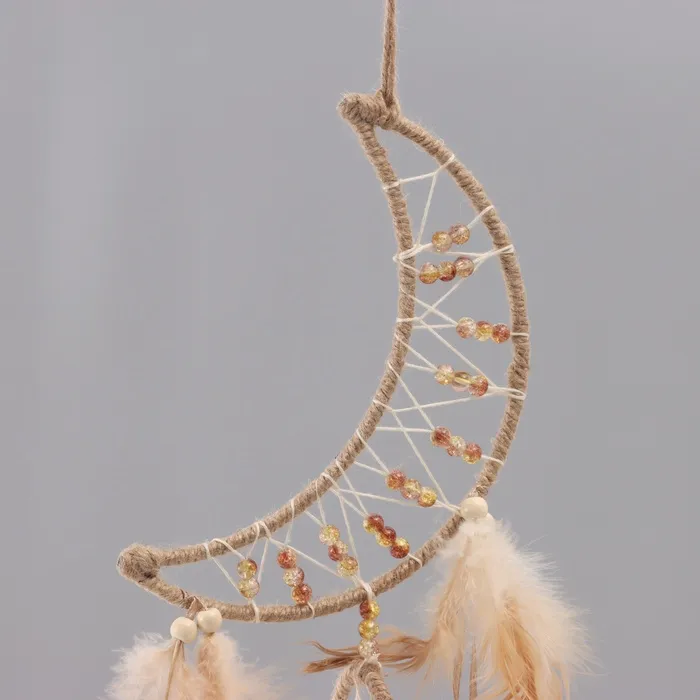 Ловец снов "Месяц" бежевый с кольцом и перьями 16х55 см — Характеристики