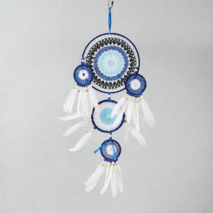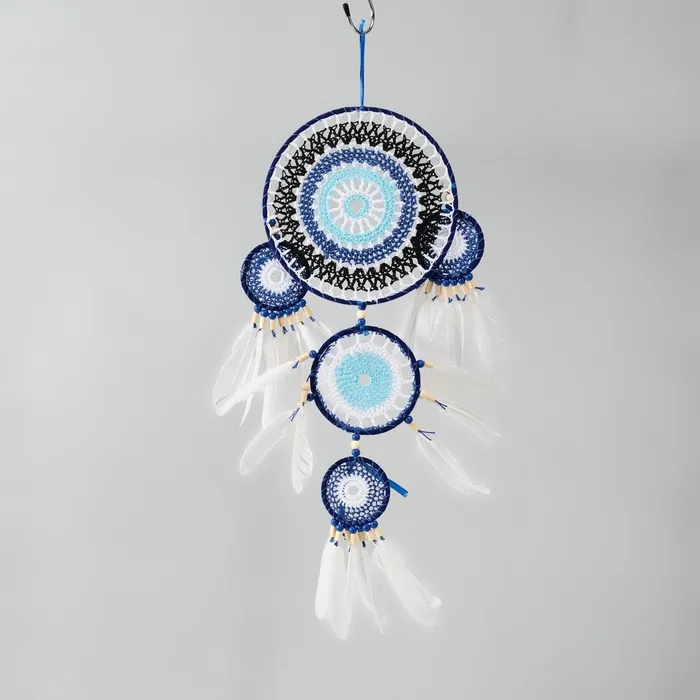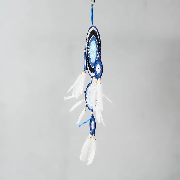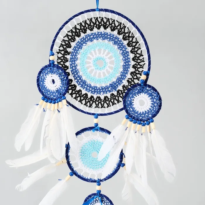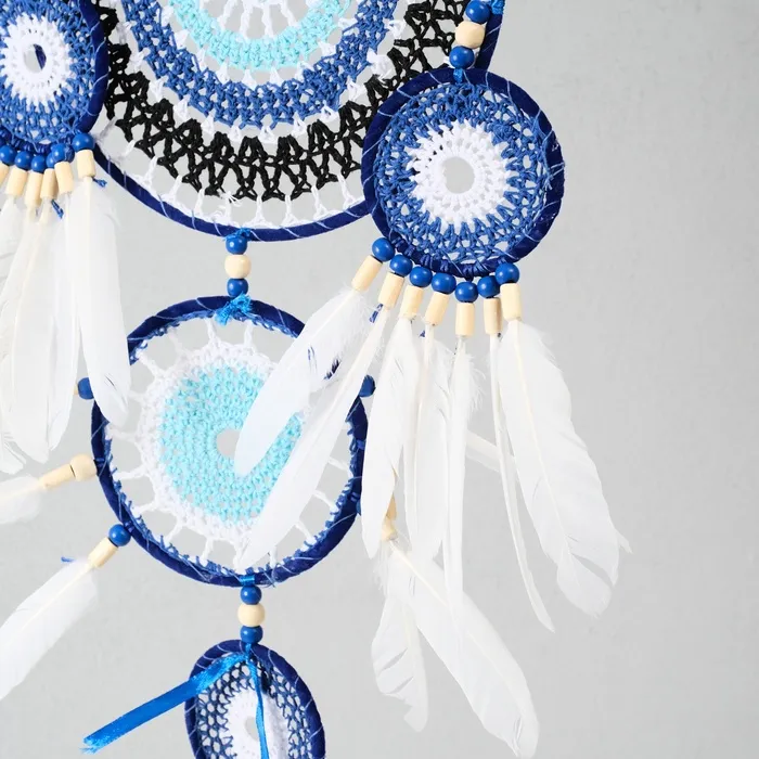 Ловец снов от сглаза 5 колец "Назар" с перьями 20х55 см — Характеристики