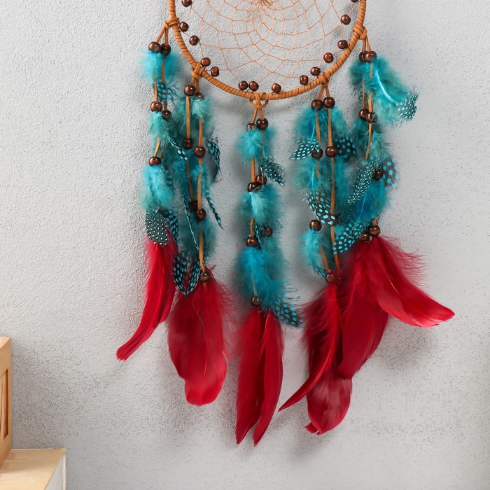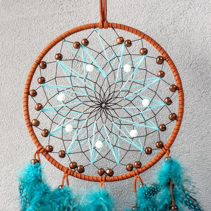 Ловец снов "Цветок в круге" голубо-розовый с пятнышками d=16 см 60х16 см — Характеристики
