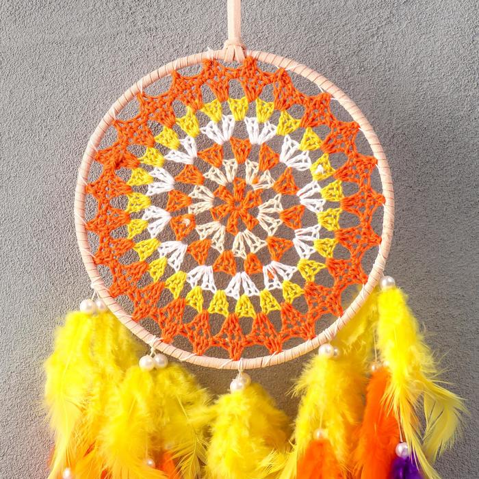 Ловец снов "Вязаный орнамент" яркий d=16 см 65х16 см — Характеристики