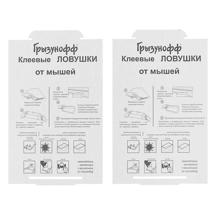 Способ применения: снять защитную бумагу с липкой поверхности и разместить ловушку под укрытиями в местах обитания или возможного передвижения крыс или мышей через 3-10 м, или где обнаружены следы жизнедеятельности.