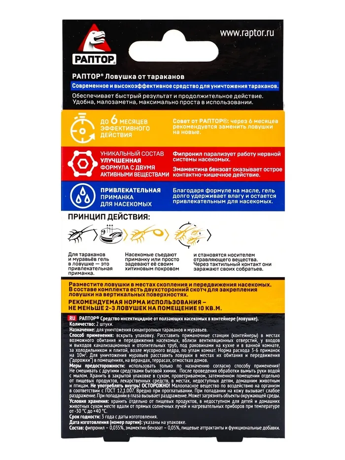 Ловушка от тараканов Раптор, средство 2 шт — Характеристики