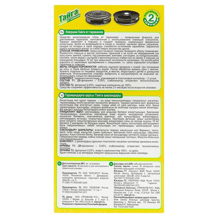 Ловушка от тараканов Тайга, 2 шт — Характеристики