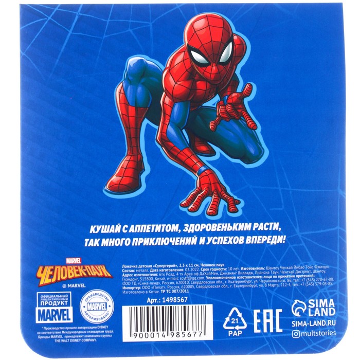 Ложечка детская, 2.3×11 см «Супергерой», Человек-паук — Характеристики