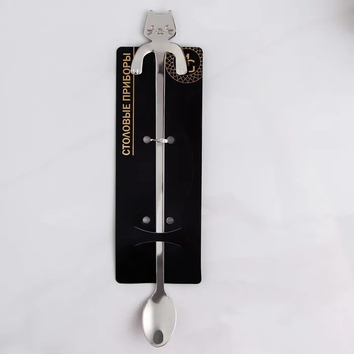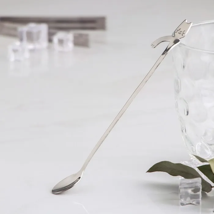 Ложка барная из нержавеющей стали Magistro «Котик», длина 20 см, цвет серебряный — Характеристики