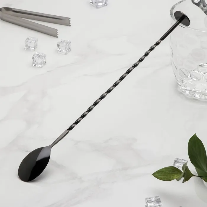 Ложка барная с мадлером из нержавеющей стали, длина 32 см, чёрная — Характеристики