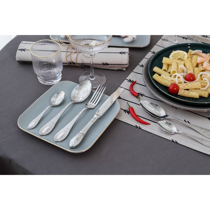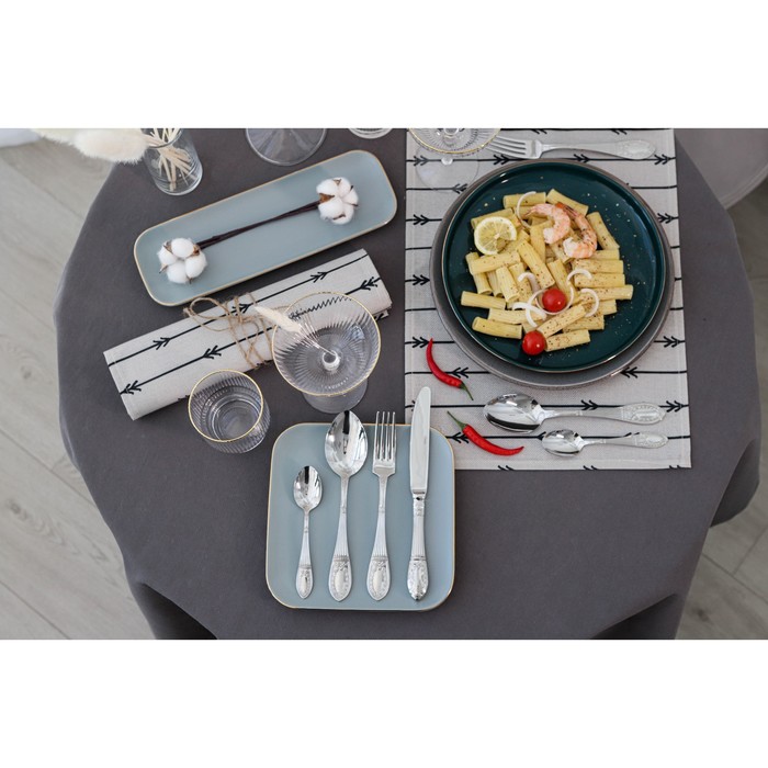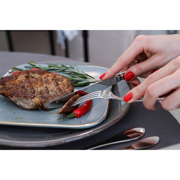 Элегантные столовые приборы «Беркли» изготовлены из пищевой нержавеющей стали. Высокое качество и безупречная полировка приборов обеспечит длительный срок службы и надежность в эксплуатации при сервировке стола. Благодаря изящному внешнему виду, эргономичной и удобной форме, они идеально подойдут как для сервировки праздничного стола, так и для ежедневного использования. Столовые приборы легко моются в посудомоечной машине.