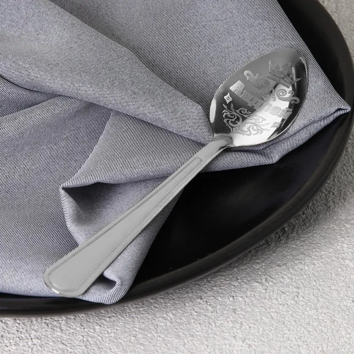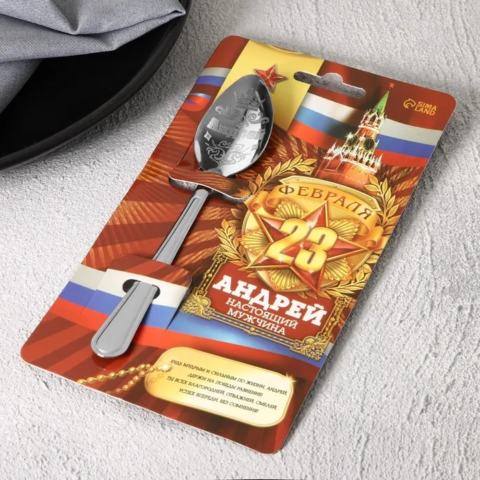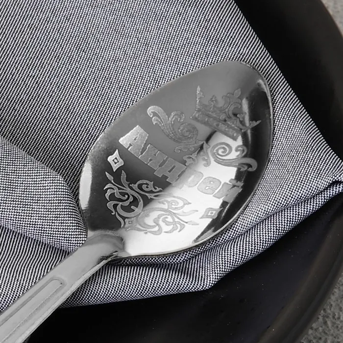 Ложка с лазерной гравировкой и изящной рукояткой преподносится на красочной открытке. На оборотной стороне изделия специально отведено место для подписи: кому и от кого был вручён подарок.