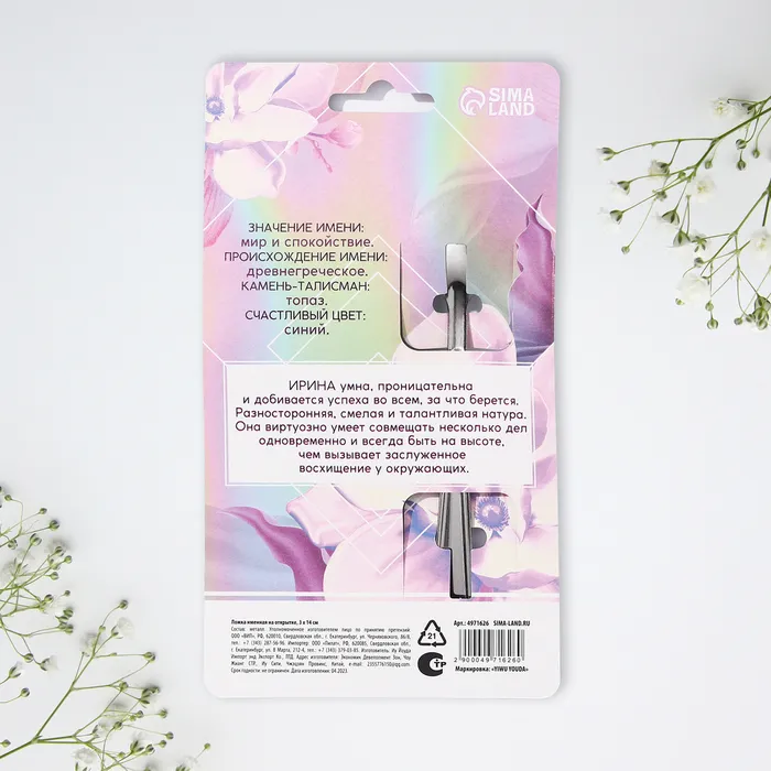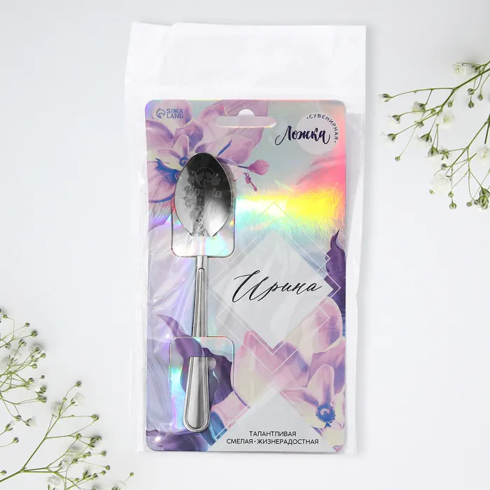 Ложка с лазерной гравировкой и изящной рукояткой преподносится на красочной открытке. На оборотной стороне изделия специально отведено место для подписи: кому и от кого был вручён подарок.